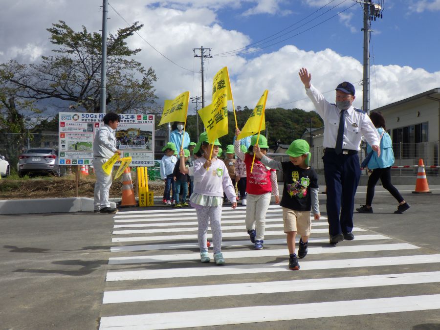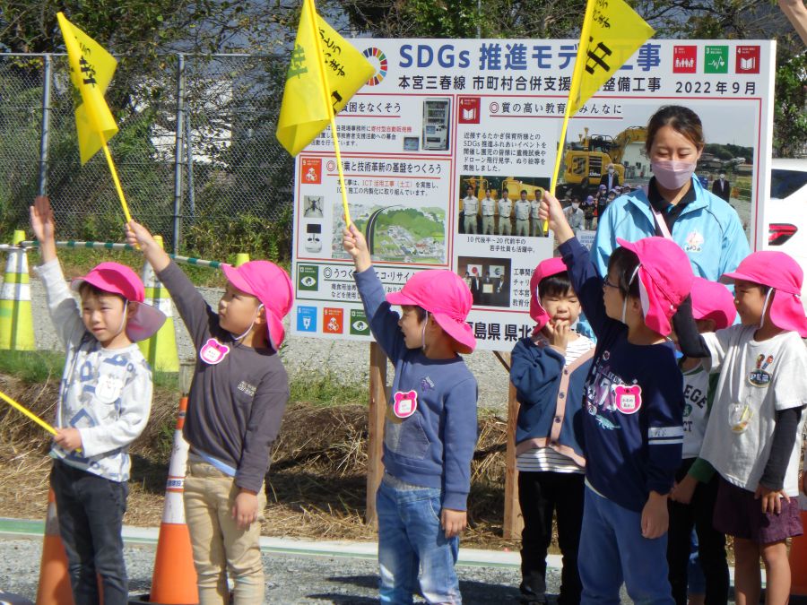 ・園児・保育士さんに近接する道路工事に触れていただくことで、建設事業への理解を深めていただき、「SDGs4.2 質の高い教育をみんなに」,「SDGs3.6 全ての人に健康と福祉を」に貢献する。