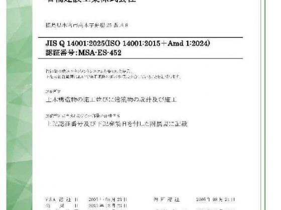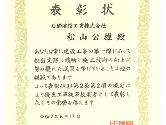 当社社員が優良建設工事として福島県より表彰状を贈呈されました