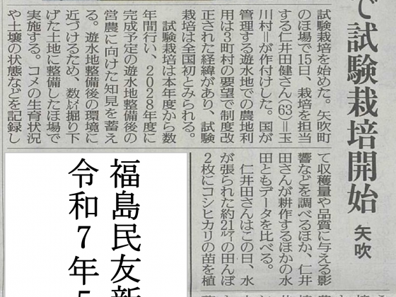 試験栽培のため当社で施工した工事が、福島民友新聞に掲載されました