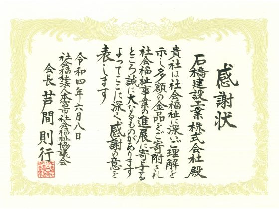 お知らせ一覧表彰状・感謝状 社会貢献表彰状・感謝状社内行事不動産ISO認証安全衛生方針その他SDGs職場体験学習 [ 表彰状・感謝状 ] 社会福祉法人本宮市社会福祉協議会より感謝状を贈呈されました ダウンロード(100 KB) [ 表彰状・感謝状 ] 大玉村より感謝状を贈呈されました ダウンロード(147 KB) [ 表彰状・感謝状 ] 福島県建設業ゼロ災宣言運動2021 ダウンロード(185 KB) « 1 2 3 4