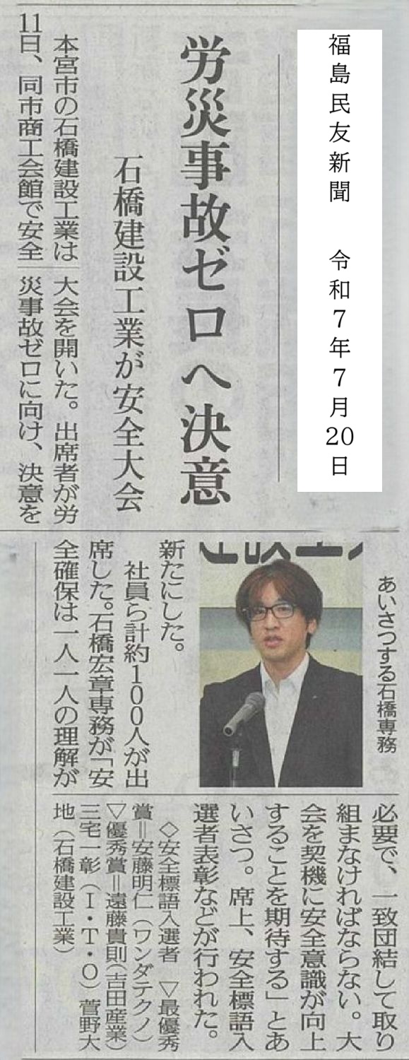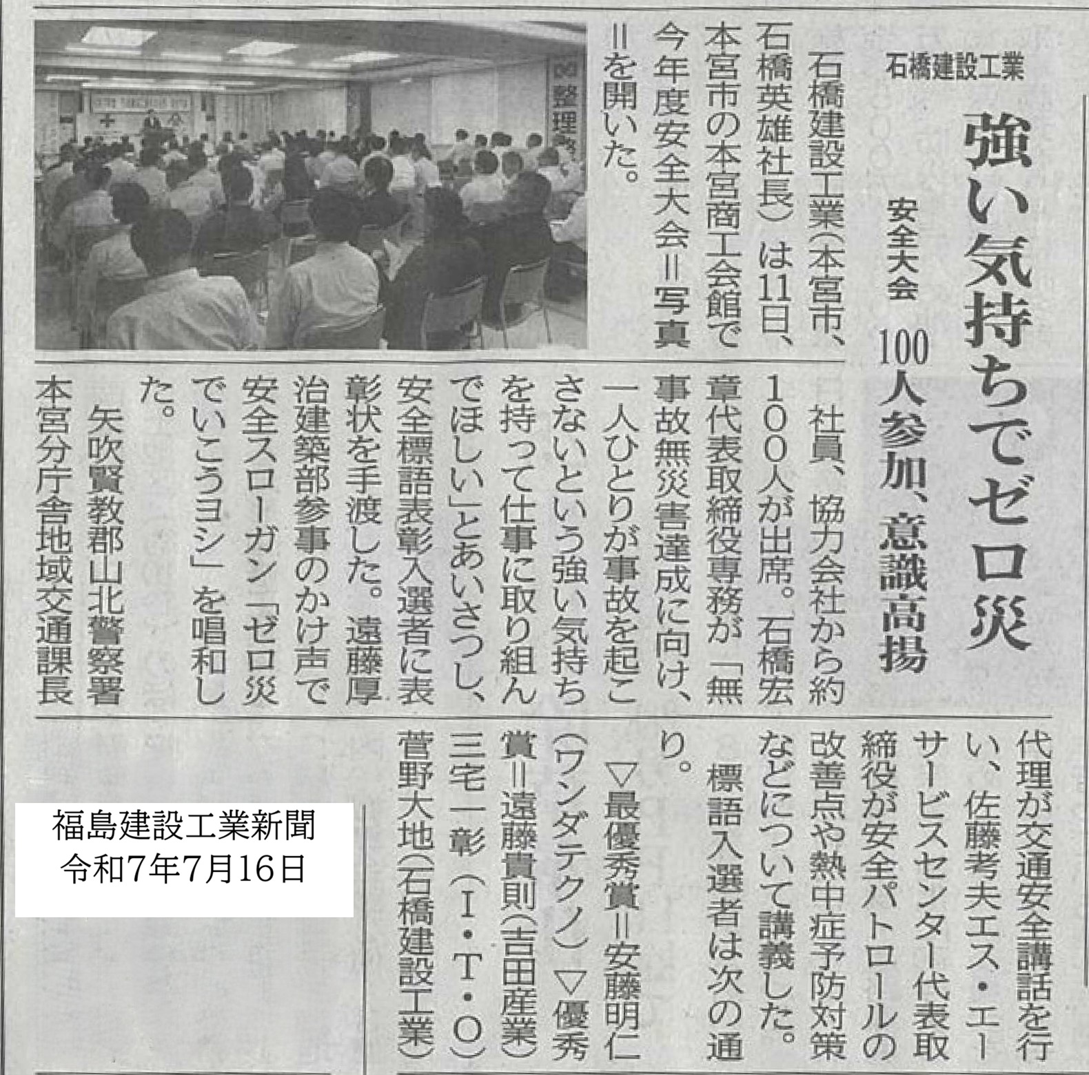 ゼロ災害に向けたスローガン唱和、安全標語表彰などを行い、関係者全員で安全に向けた再確認をしました