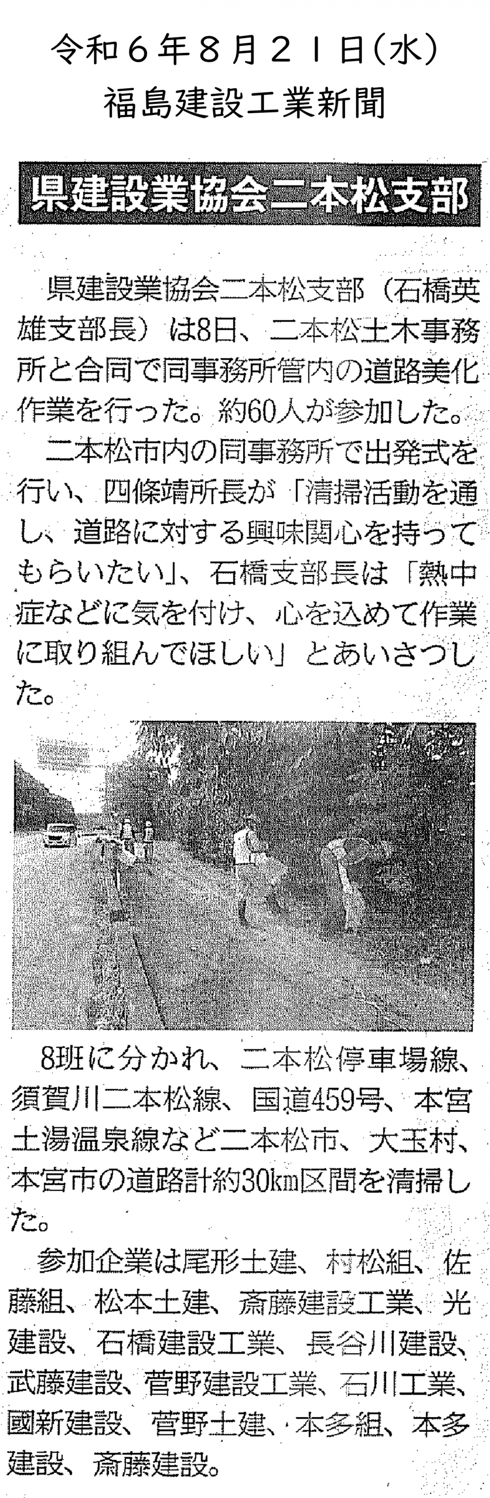 二本松土木事務所と合同で道路美化作業を行いました。