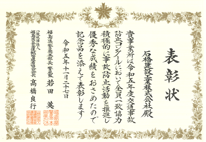 福島県警本部・福島県安全運転管理協会より表彰されました
