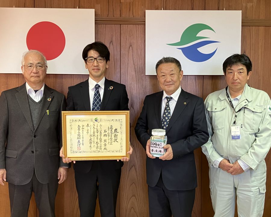 ゴルフコンペの募金については、当社のSDGs推進チームリーダーである代表取締役専務の石橋から、本宮市の子育て・教育分野のSDGs推進に寄付しました。 2022年7月1日