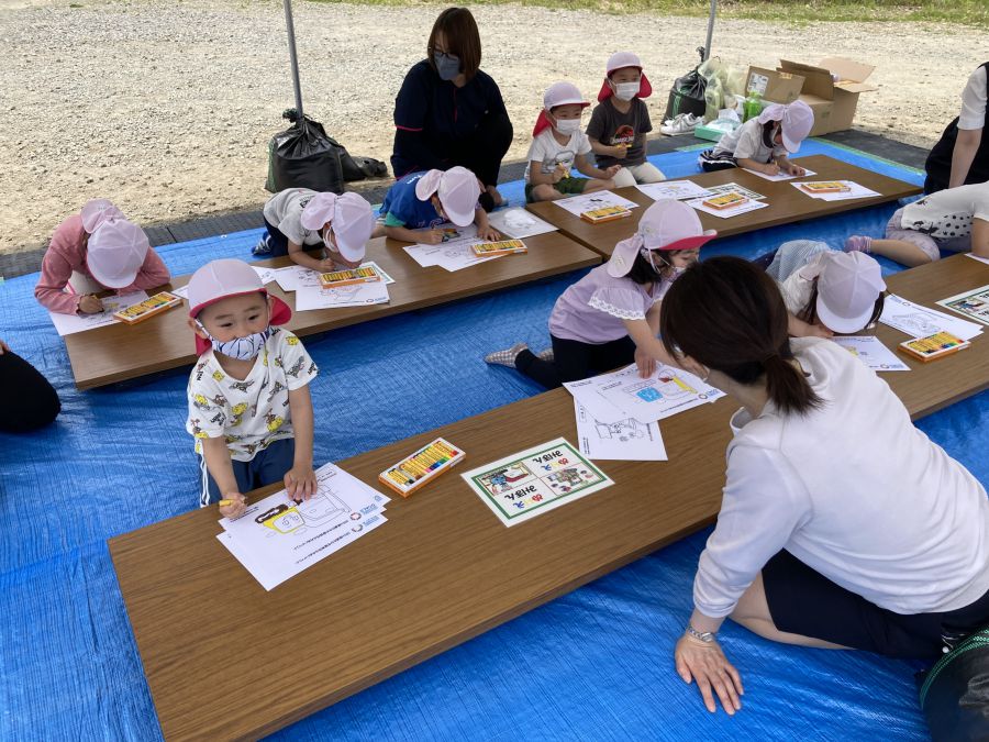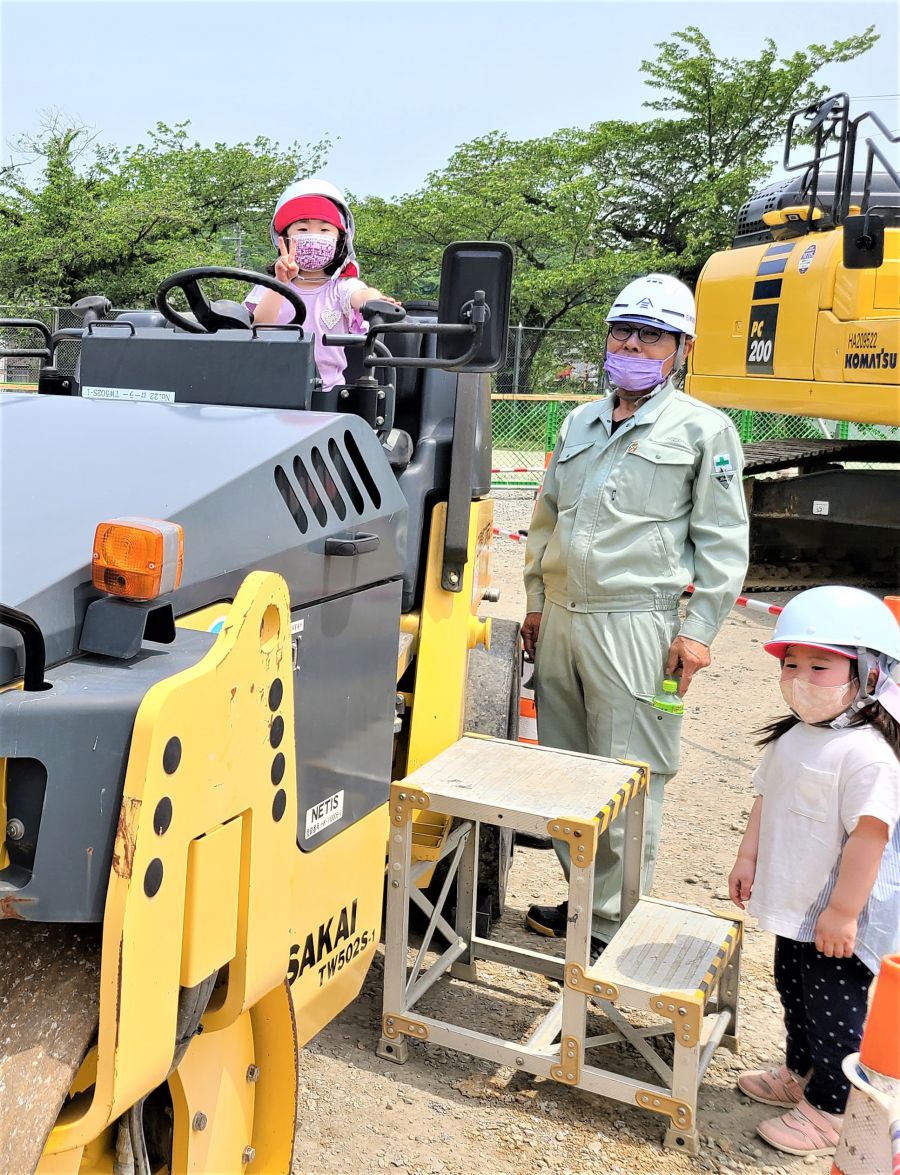 たかぎ保育所の園児さんの重機試乗、ドローン運転見学、お絵かき等を行いました。 2022年5月20日