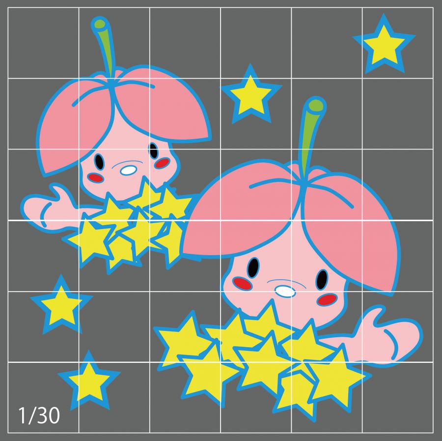 本宮市のマスコット「まゆみちゃん」を中心に輝く星が散りばめられたデザインになっています。