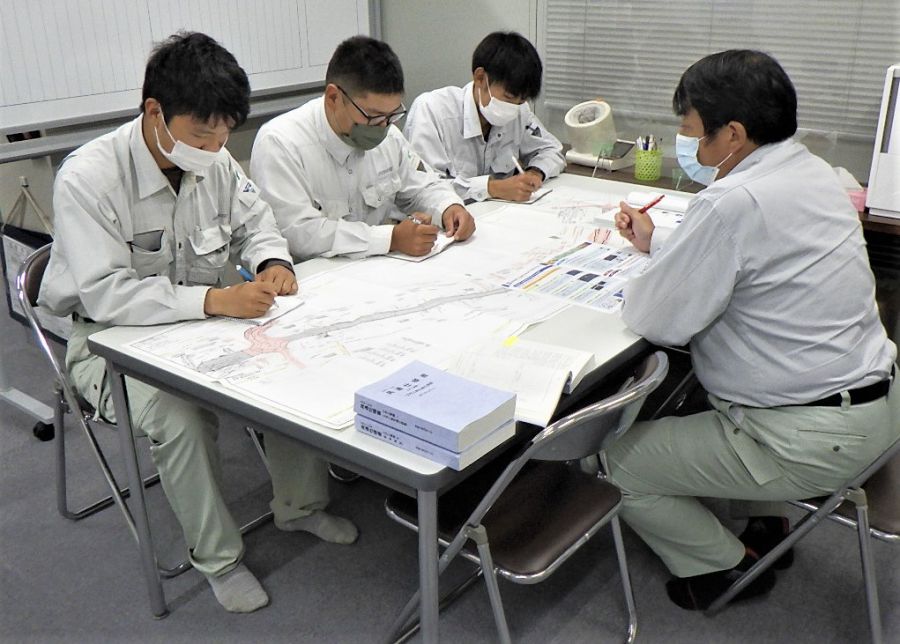当社の若手社員の技術力向上を図るため、当該工事を工程、安全、出来形、品質管理等の教育モデル工事にしています。