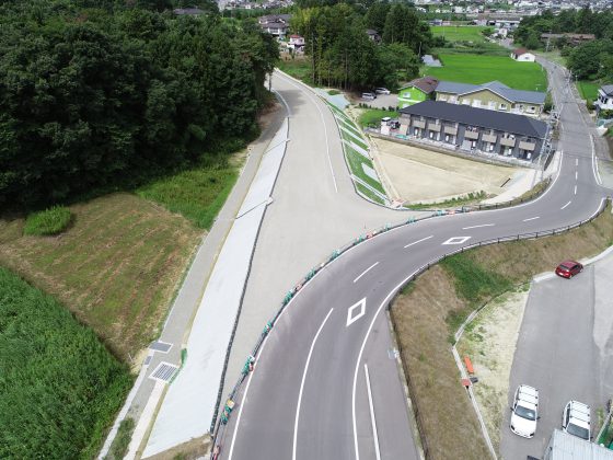 市町村合併支援道路整備工事(舗装)バイパス道路完了 SDGsモデル工事